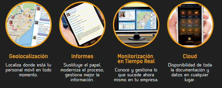 - Geolocalización : Podrá localizar sus empleados en tiempo real.
